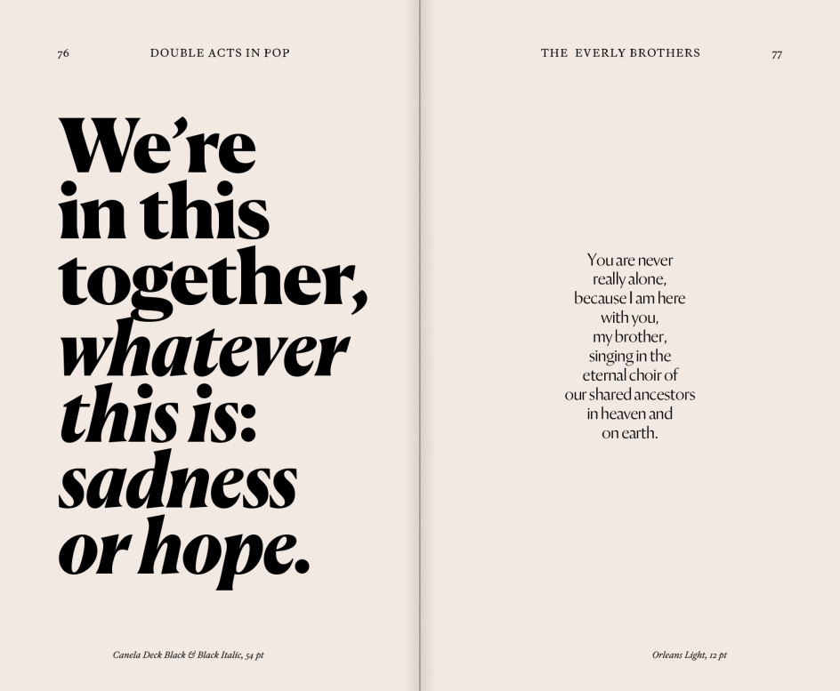 The entire library of the type foundry is used across the book, highlighting the best and worst musical double acts over the years.